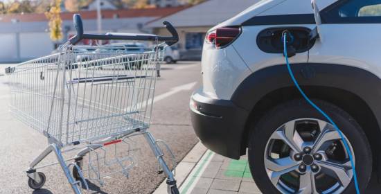 Un coche eléctrico recarga sus baterías en un supermercado Un informe que detalla la situación actual