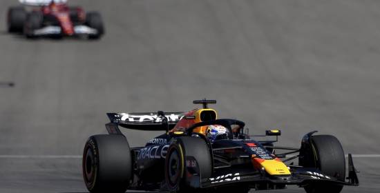 Leclerc, al fondo, fue el principal aliado de Verstappen con una estrategia cambiada.Red Bull Content Pool