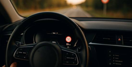 Coche detectando la velocidad por la señal de tráfico