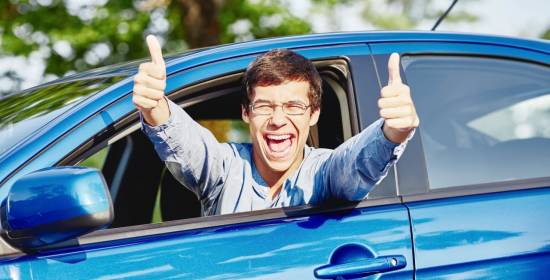 Un joven conductor muestra su alegría tras sacarse el carnet de conducir