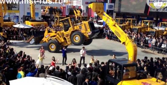 Rusia es diferente, está claro. Porque dónde sino una feria de maquinaria de obras públicas se transforma en una especie de parodia de Transformers. Como lo escuchas: el fabricante de palas Lovol – afincado en Rusia – decidió mostrar al públ
